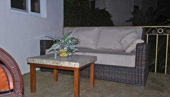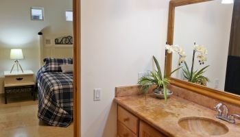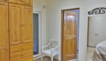 The villa has four bedrooms and two bathrooms on the lower level. (Sleeps 6.) Upstairs, you will find an office where you can work and sharing the space at the same time with a bed; full kitchen, laundry room, half bathroom, dining area, and a living room with access to terrace and an outside patio.