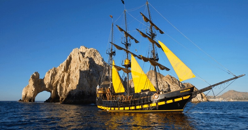 Cabo has been home to pirates since the 1500s. Cruise back in time aboard our 100-foot wooden early-1900s pirate sailboat, and see the world-famous arch while hearing tall tales about Cabo history and the pirates that sailed its seas. Strike the real, working sails and drop anchor to get quality time with the tropical fish.