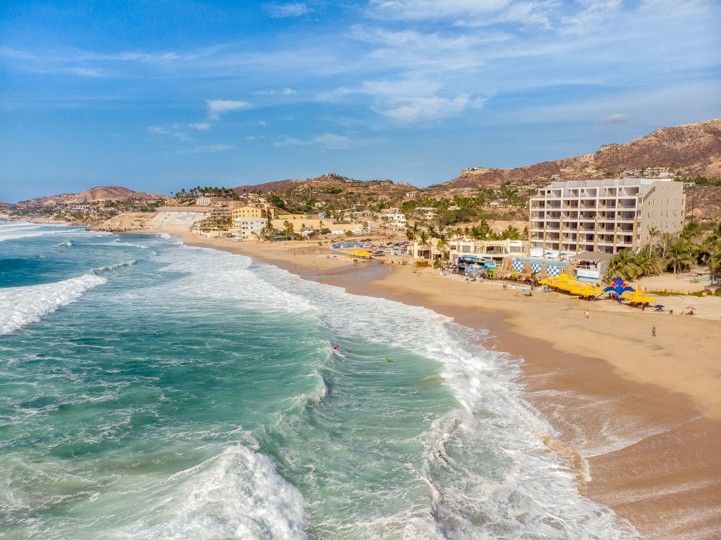 The incredible sunset views have led to many developments here, most recently The Cape: A Thompson Hotel, a hip new luxury resort featuring retro decor and surfer chic. Guests have access to rentals at the onsite surf shop, and there are some surf-themed suites set aside for visiting wave riders. Despite the crowded setting, however, the beach is open to the public, by law, and there is parking available. Summer is the preferred season for surfing in the Sea of Cortés.